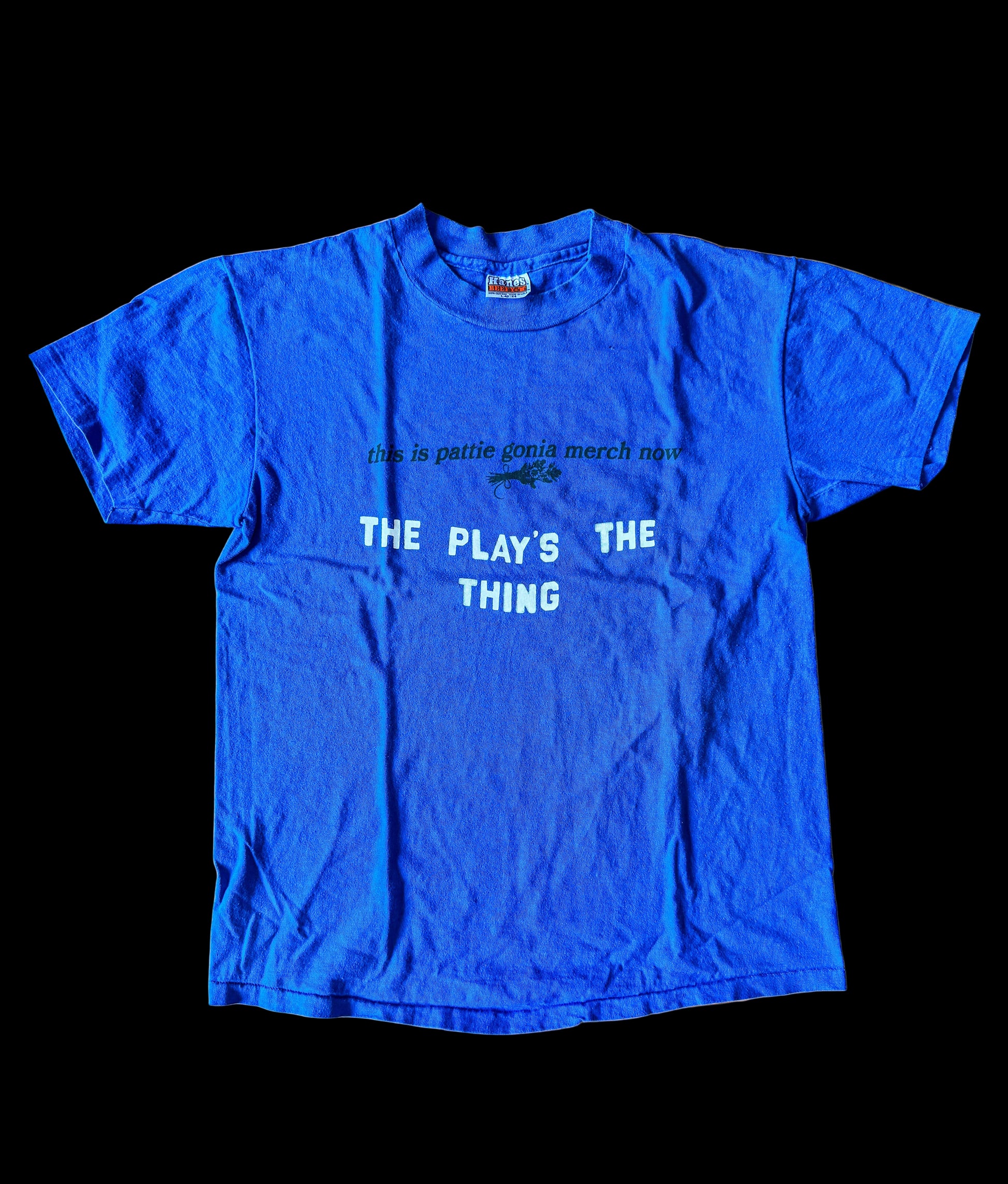 This isn't a thrifted, second hand shirt, "this is pattie gonia merch now". With straightforward text across the chest, this shirt makes it clear that your once-worn garment has been reborn as official Pattie Gonia merch. It's minimal, it's eco-conscious, and it's a statement that screams sustainability, bitch.